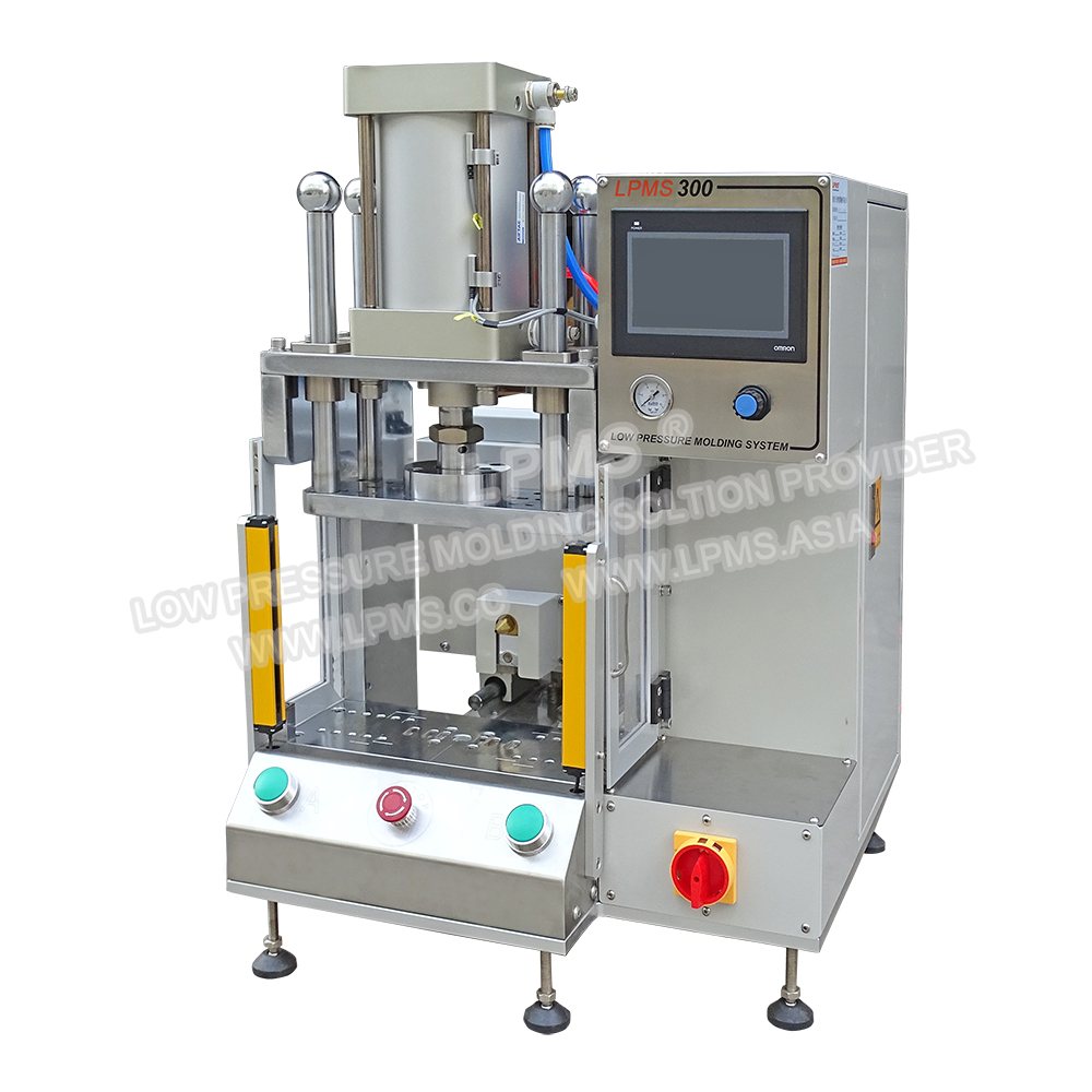 LPMS 300桌上型側式低壓注膠機的工作臺和熔膠系統(tǒng)為一體式設計,其注膠槍位於模具側面,從模具側面注膠,當產(chǎn)品較大時模具只能設計為一模一穴,採用側式低壓注膠可避免在產(chǎn)品正上方注膠而留下進料痕影響產(chǎn)品美觀。適合封裝尺寸較大或外形複雜產(chǎn)品。