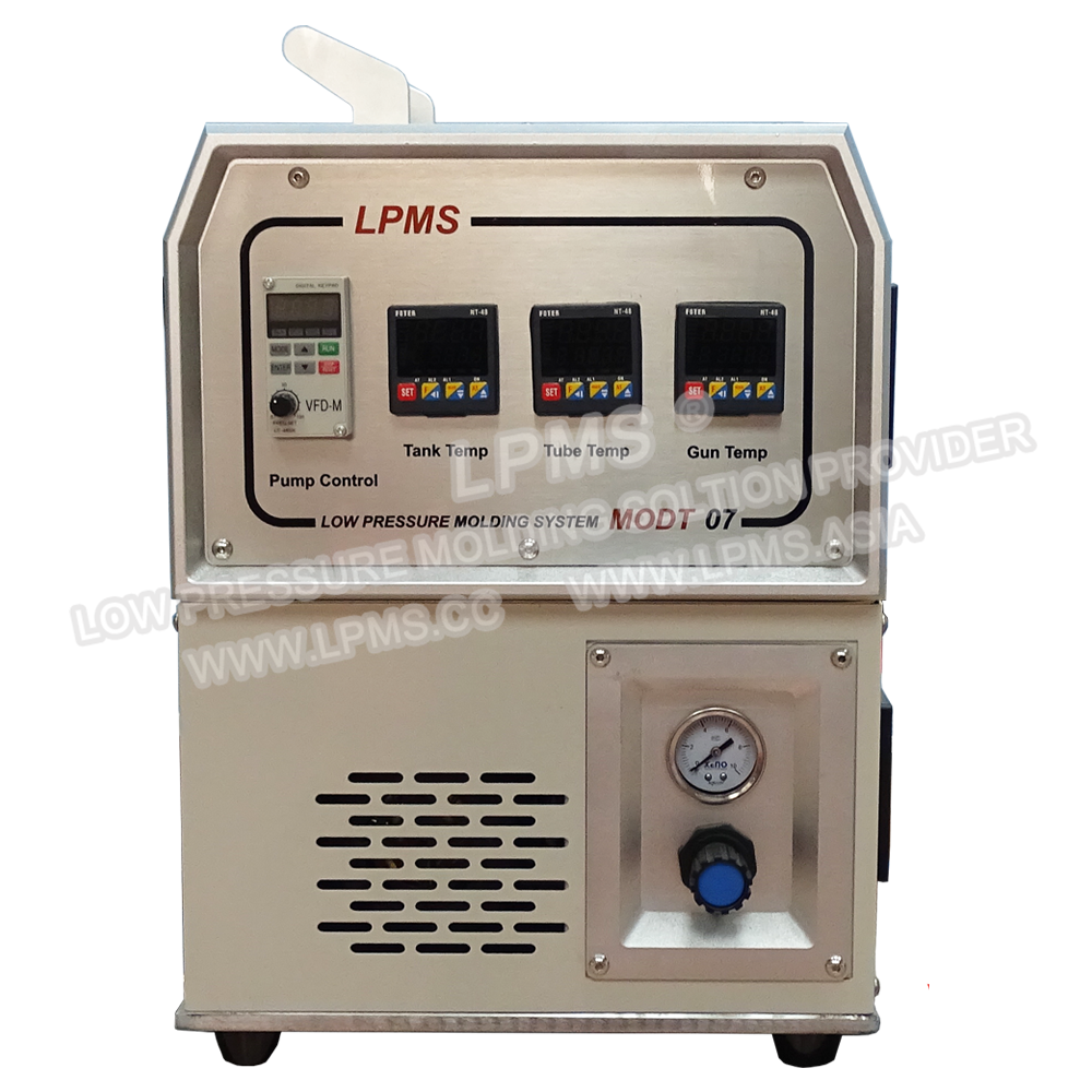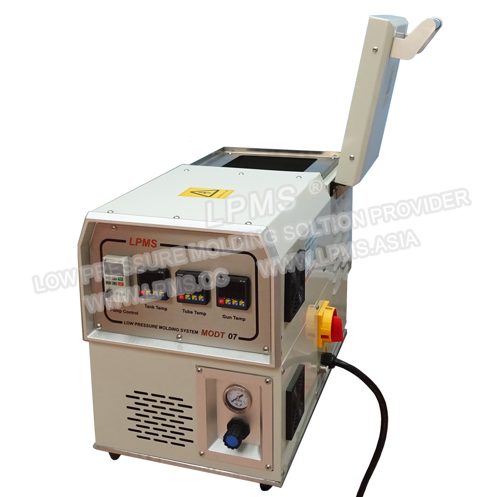 熱熔膠熔膠機是低壓注塑設備的核心部件,有儲膠、輸送膠料、熔化膠料、控制膠量和注膠壓力等功能,使注膠達到穩定的效果,MODT-07系列和LPMS各種類型的低壓注膠工作臺搭配後適用於各式低壓熱熔膠成型樹脂對產品注膠包封,制程壓力低(0-6Mpa),不會損傷零部件,無化學反應,成形快速,冷卻即成型,成型後產品具有絕緣與防水等性能。
